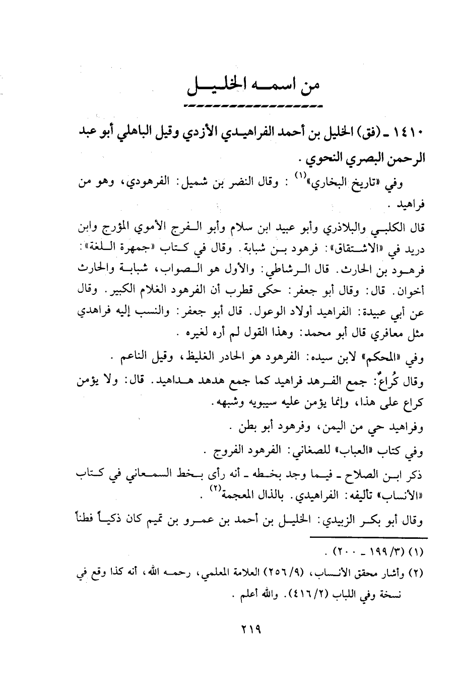1410 - (فق) الخليل بن أحمد الفراهيدي الأزدي وقيل الباهلي أبو عبد الرحمن البصري النحوي.