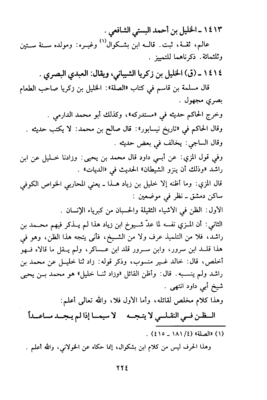 1414 - (ق) الخليل بن زكريا الشيباني، ويقال: العبدي البصري.