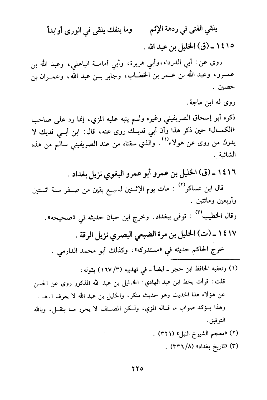 1416 - (ق) الخليل بن عمرو أبو عمرو البغوي نزيل بغداد.