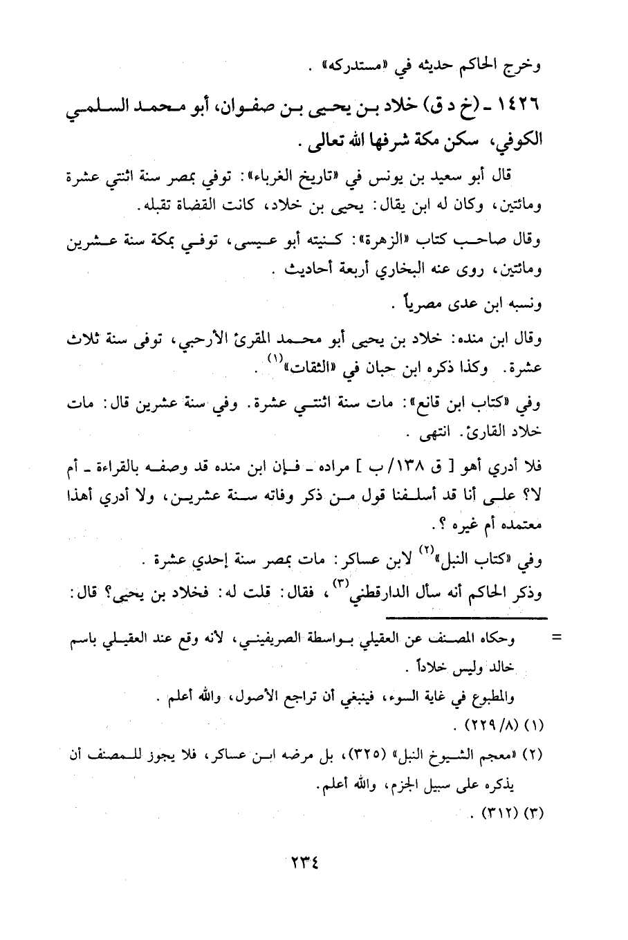 1426 - (خ د ق) خلاد بن يحيى بن صفوان، أبو محمد السلمي الكوفي، سكن مكة شرفها الله تعالى.