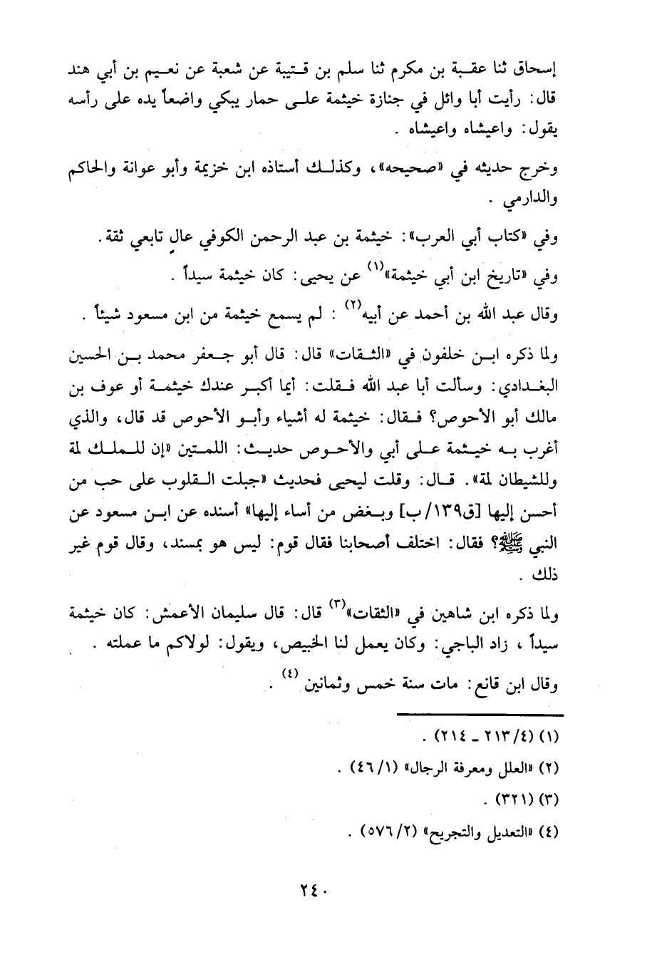 وفي «تاريخ ابن أبي خيثمة» عن يحيى: كان خيثمة سيدا.