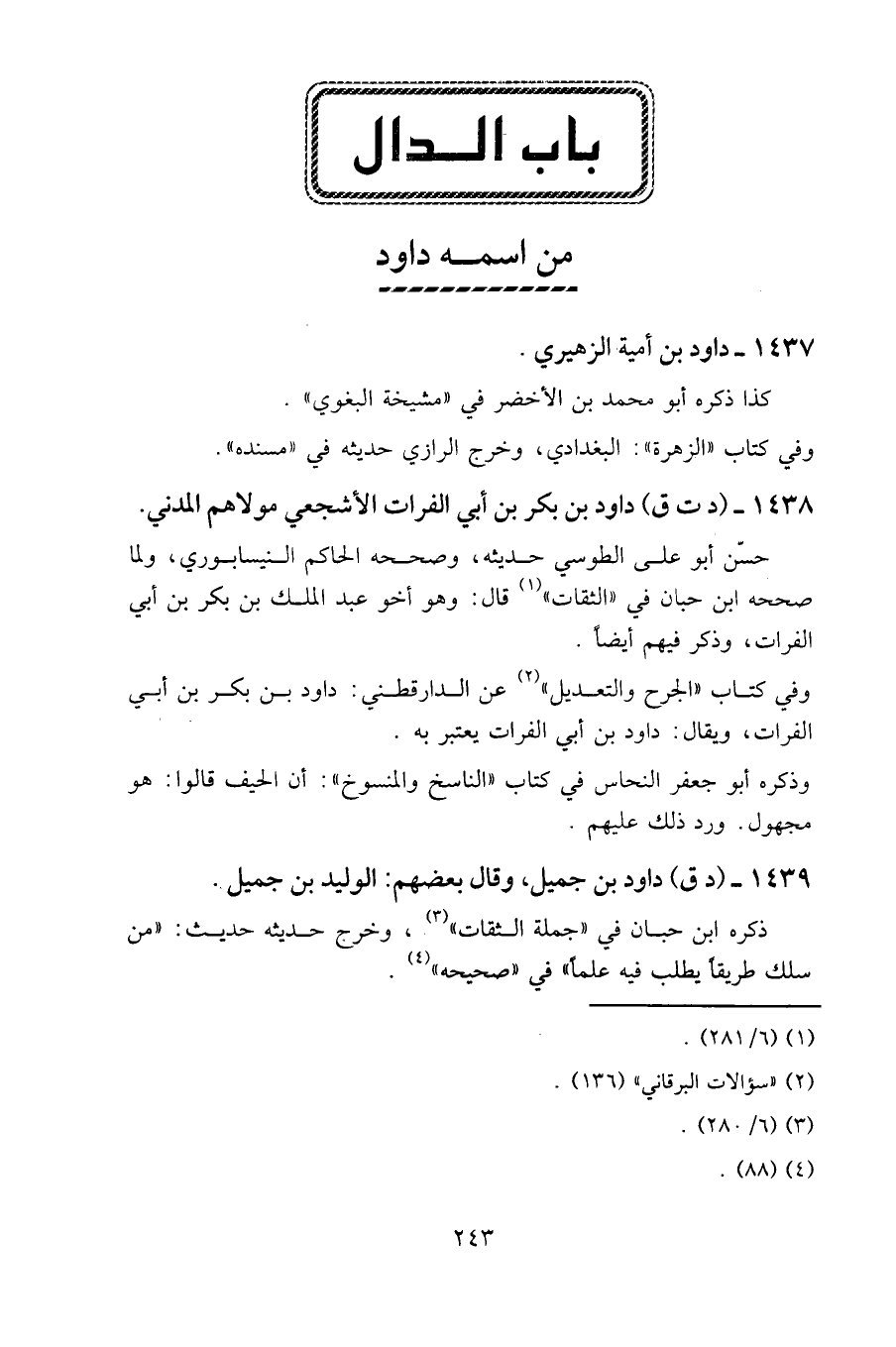 1439 - (د ق) داود بن جميل، وقال بعضهم: الوليد بن جميل.