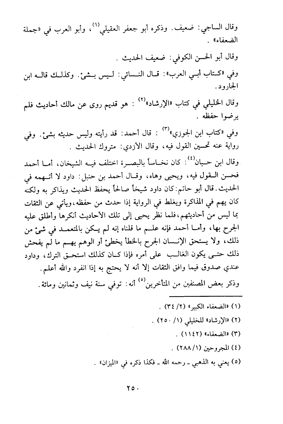 وقال الساجي: ضعيف. وذكره أبو جعفر العقيلي، وأبو العرب في «جملة الضعفاء».