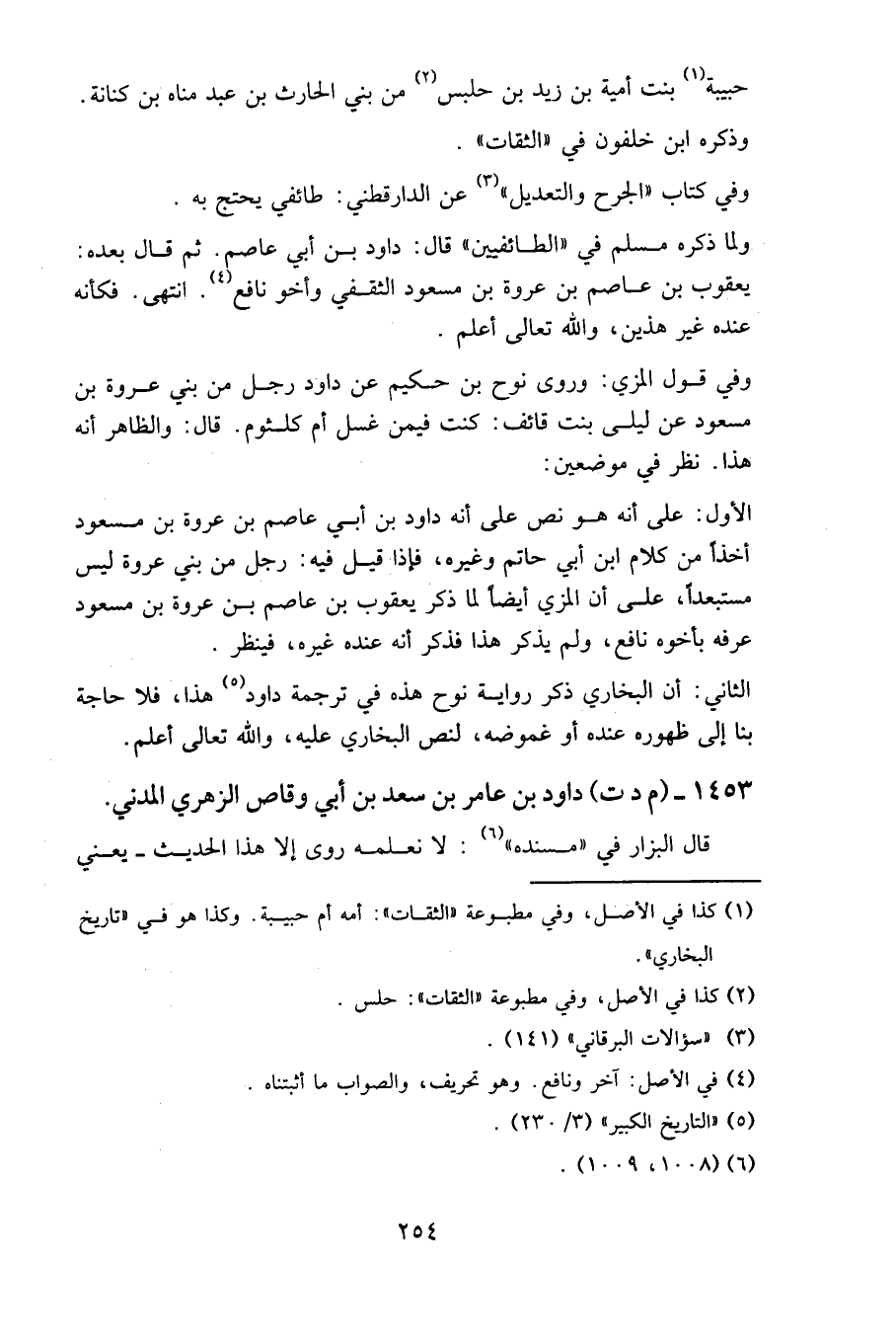 الأول: على أنه هو نص على أنه داود بن أبي عاصم بن عروة بن مسعود أخذا من كلام ابن أبي حاتم وغيره، فإذا قيل فيه: رجل من بني عروة ليس مستبعدا، على أن المزي أيضا لما ذكر يعقوب بن عاصم بن عروة بن مسعود عرفه بأخوه نافع، ولم يذكر هذا فذكر أنه عنده غيره، فينظر.