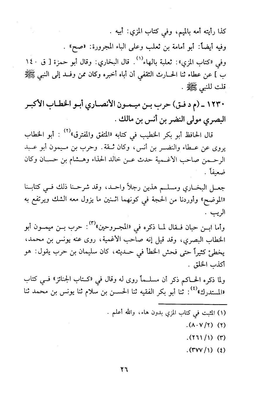 1230 - (م د فق) حرب بن ميمون الأنصاري أبو الخطاب الأكبر البصري مولى النضر بن أنس بن مالك.