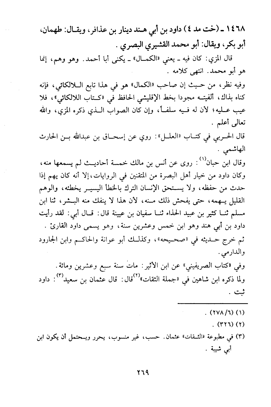 1468 - (خت مد 4) داود بن أبي هند دينار بن عذافر، ويقال: طهمان، أبو بكر، ويقال: أبو محمد القشيري البصري.