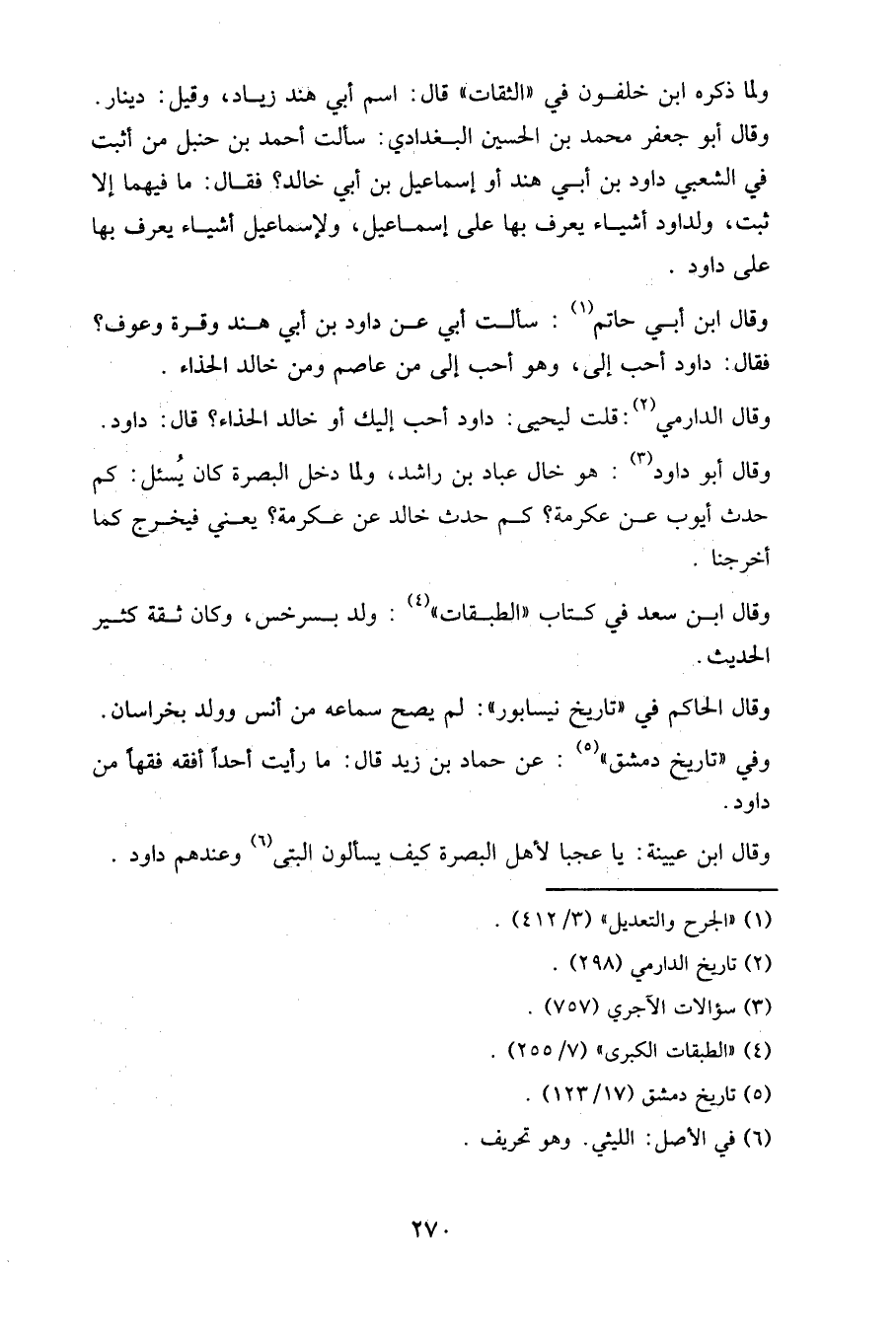 وفي «تاريخ دمشق»: عن حماد بن زيد قال: ما رأيت أحدا أفقه فقها من داود.