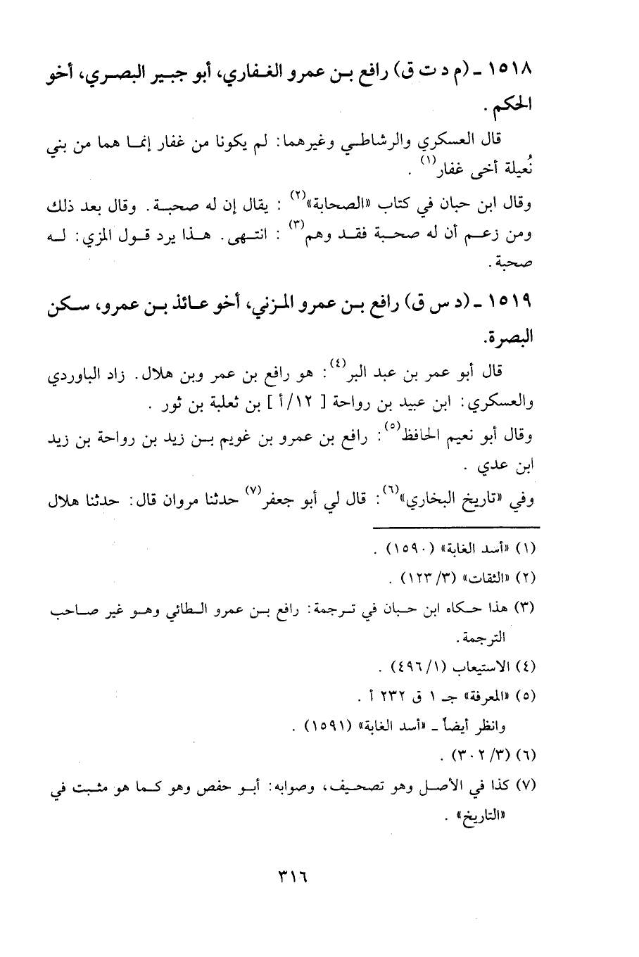 1519 - (د س ق) رافع بن عمرو المزني، أخو عائذ بن عمرو، سكن البصرة.