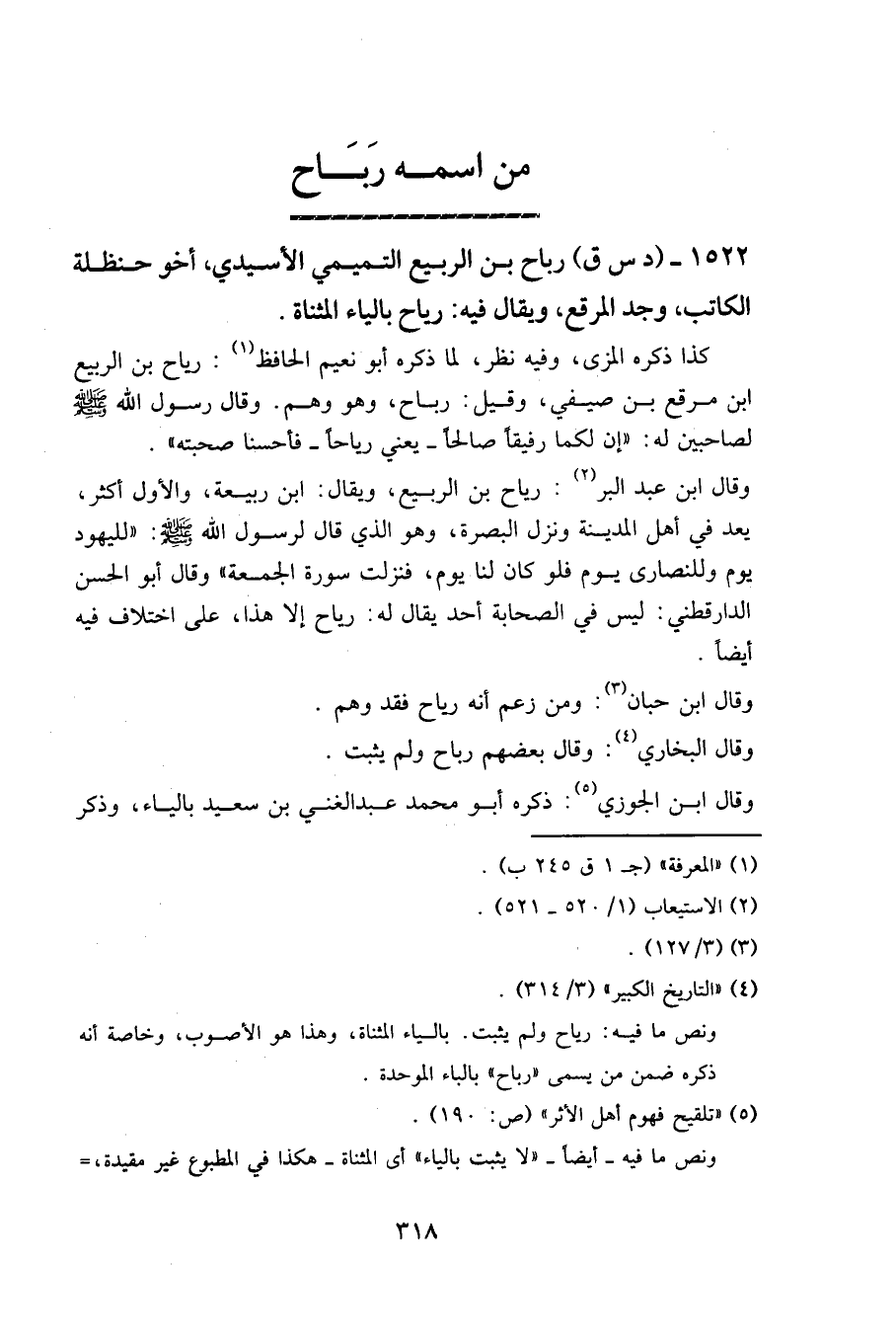 1522 - (د س ق) رباح بن الربيع التميمي الأسيدي، أخو حنظلة الكاتب، وجد المرقع، ويقال فيه: رياح بالياء المثناة.