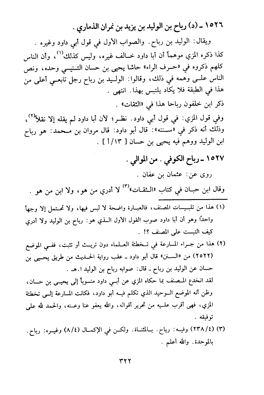 وفي قول المزي: في قول أبي داود. نظر؛ لأن أبا داود لم يقله إلا نقلا، وذلك أنه ذكر في «سننه»: قال أبو داود: قال مروان بن محمد: هو رباح بن الوليد، وهم فيه يحيى بن حسان.