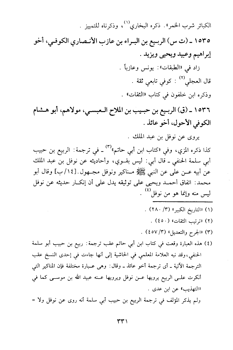 1536 - (ق) الربيع بن حبيب بن الملاح العبسي، مولاهم، أبو هشام الكوفي الأحول، أخو عائذ.