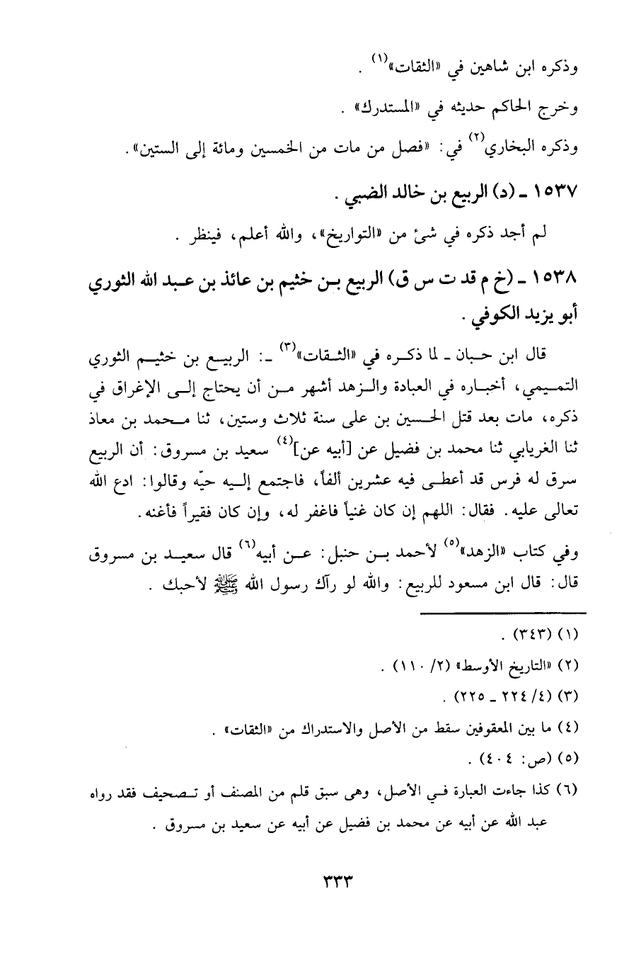 1538 - (خ م قد ت س ق) الربيع بن خثيم بن عائذ بن عبد الله الثوري أبو يزيد الكوفي.