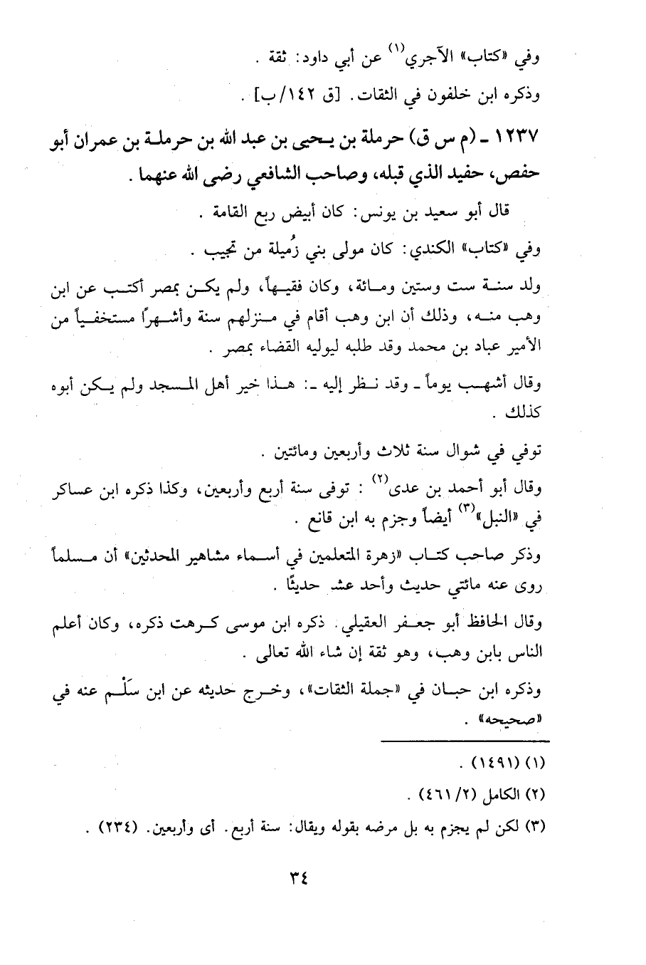 1237 - (م س ق) حرملة بن يحيى بن عبد الله بن حرملة بن عمران أبو حفص، حفيد الذي قبله، وصاحب الشافعي رضي الله عنهما.