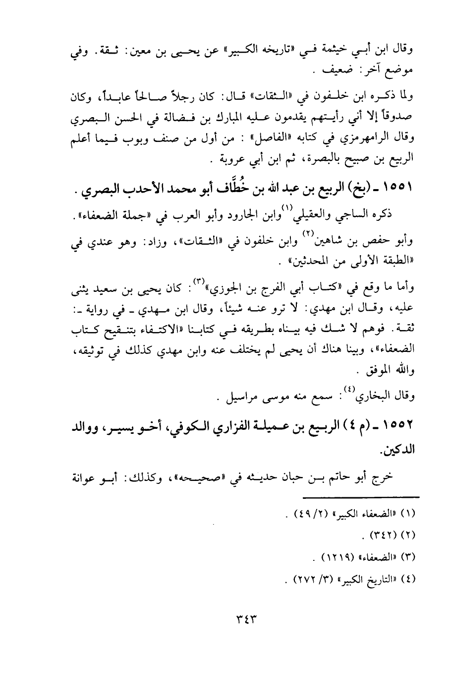 1551 - (بخ) الربيع بن عبد الله بن خطاف أبو محمد الأحدب البصري.