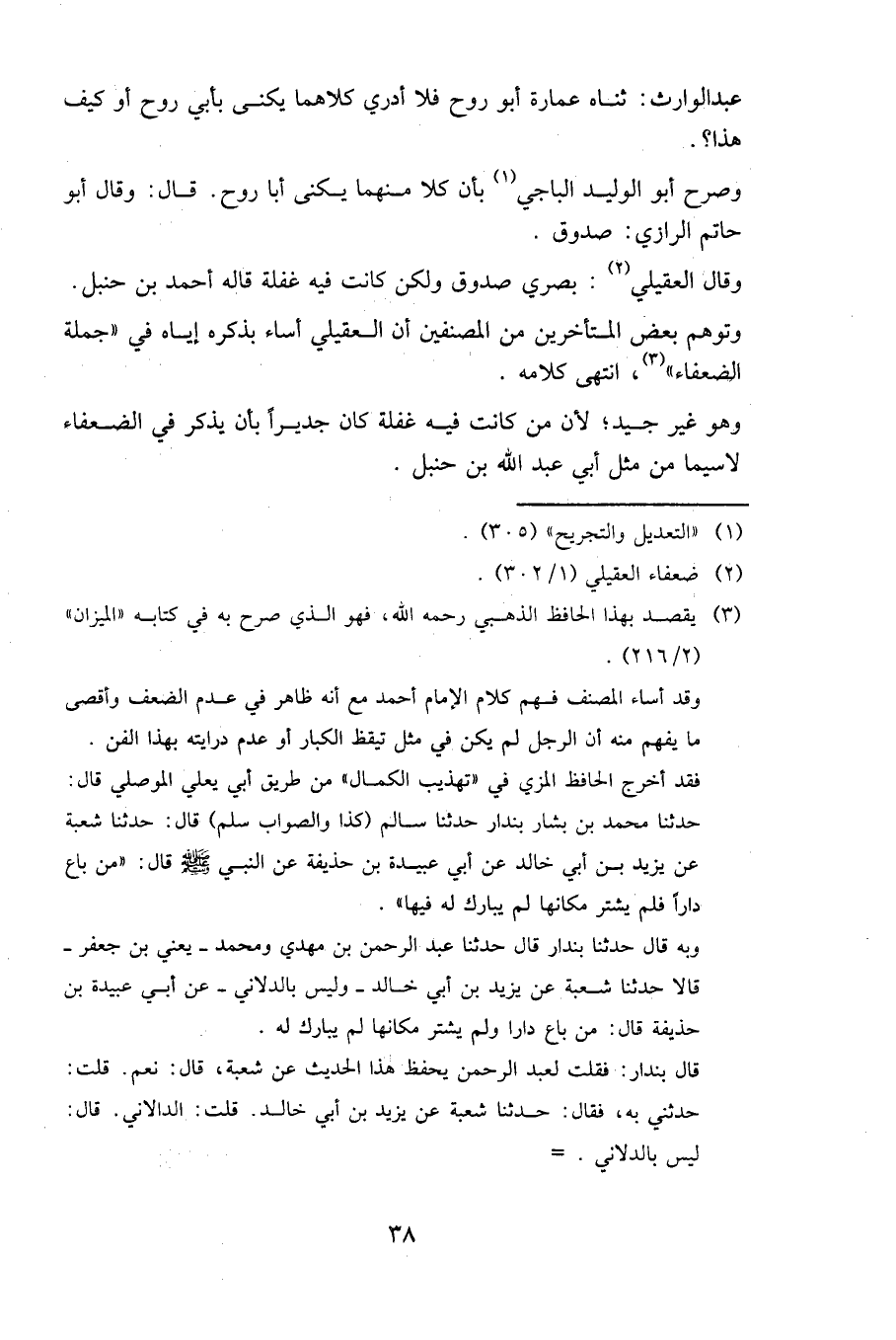 عبد الوارث: ثناه عمارة أبو روح فلا أدري كلاهما يكنى بأبي روح أو كيف هذا؟