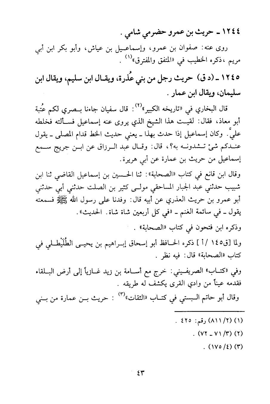 1245 - (د ق) حريث رجل من بني عذرة، ويقال ابن سليم، ويقال ابن سليمان، ويقال ابن عمار.
