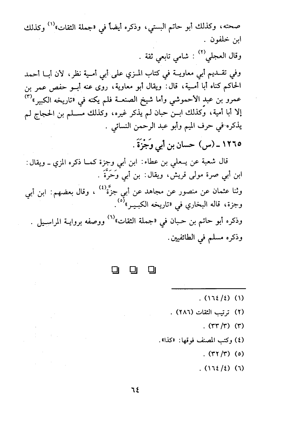 وفي تقديم أبي معاوية في كتاب المزي على أبي أمية نظر؛ لأن أبا أحمد الحاكم كناه أبا أمية، قال: ويقال أبو معاوية، روى عنه أبو حفص عمر بن عمرو بن عبد الأحموشي، وأما شيخ الصنعة فلم يكنه في «تاريخه الكبير» إلا أبا أمية، وكذلك ابن حبان لم يذكر غيره، وكذلك مسلم بن الحجاج لم يذكره في حرف الميم، وأبو عبد الرحمن النسائي.