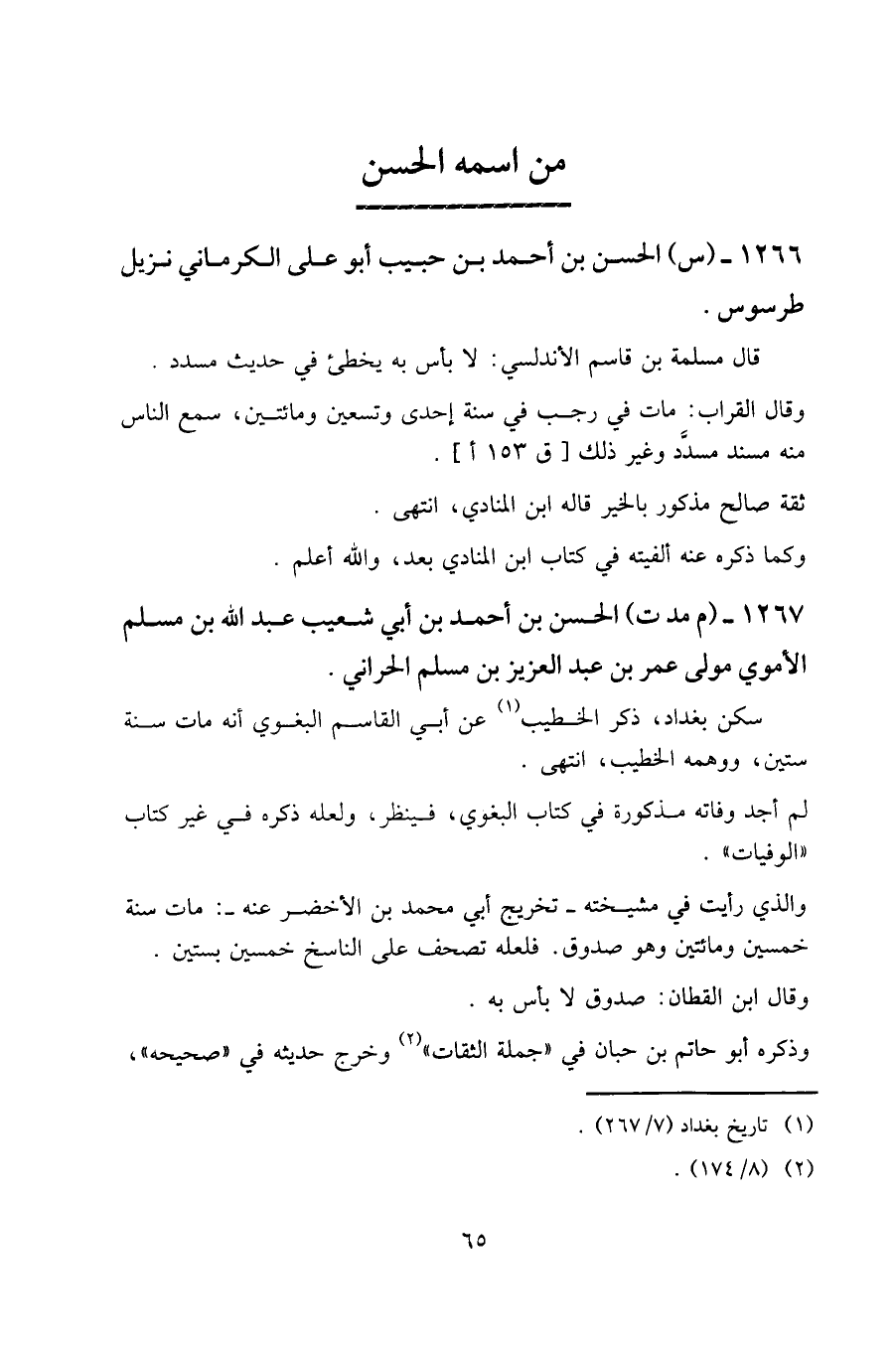 1266 - (س) الحسن بن أحمد بن حبيب أبو علي الكرماني نزيل طرسوس.