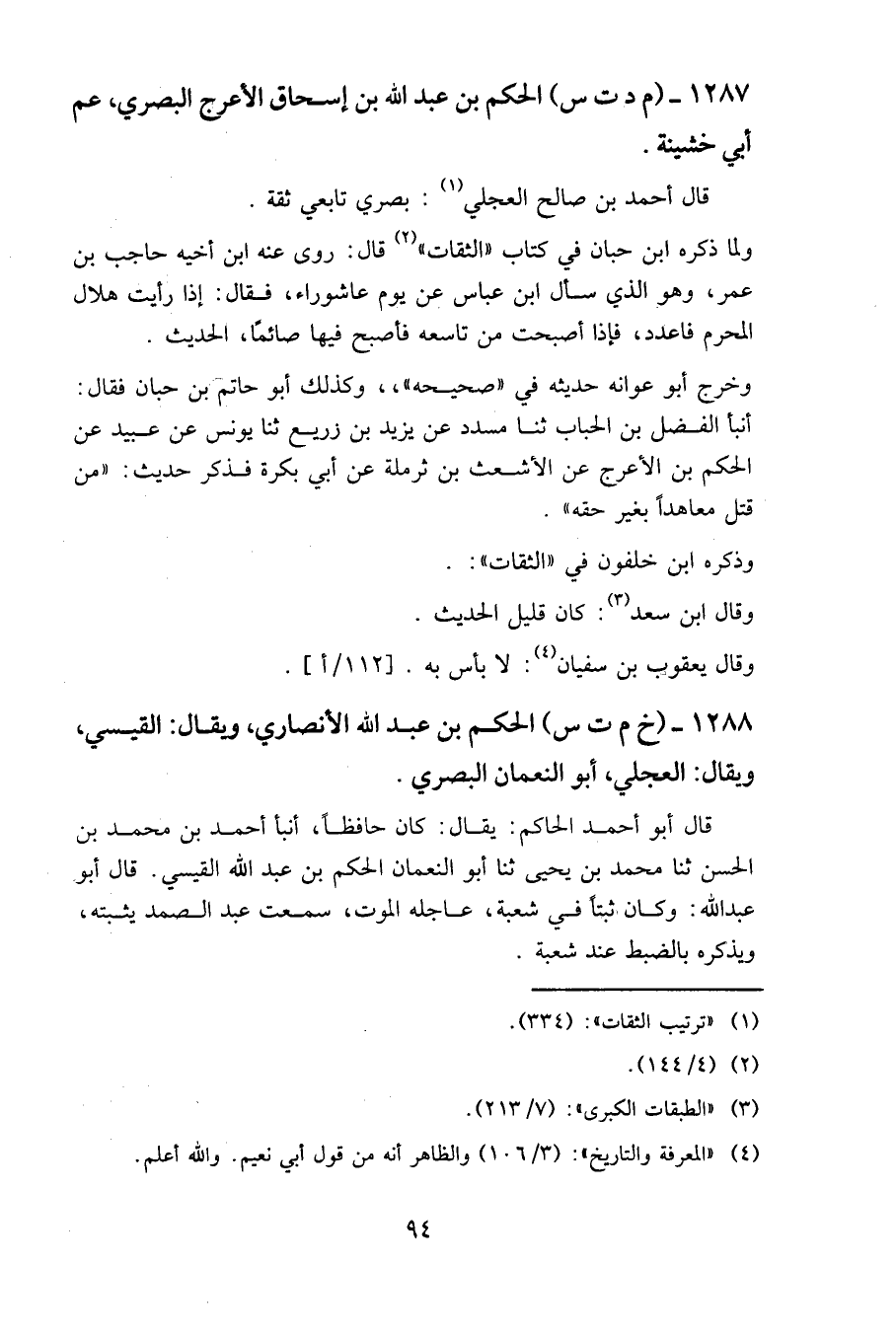 1288 - (خ م ت س) الحكم بن عبد الله الأنصاري، ويقال: القيسي، ويقال: العجلي، أبو النعمان البصري.