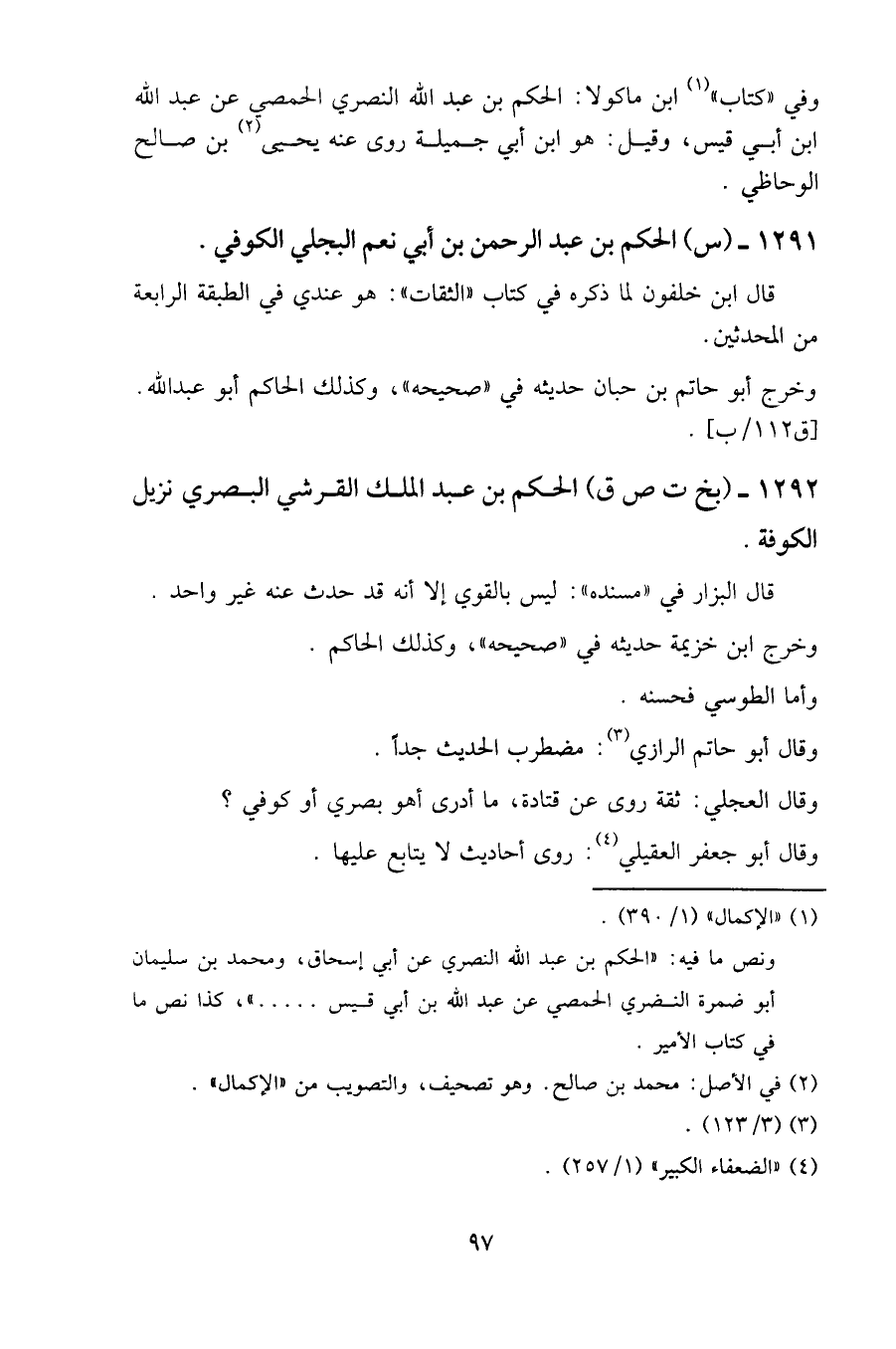 1291 - (س) الحكم بن عبد الرحمن بن أبي نعم البجلي الكوفي.
