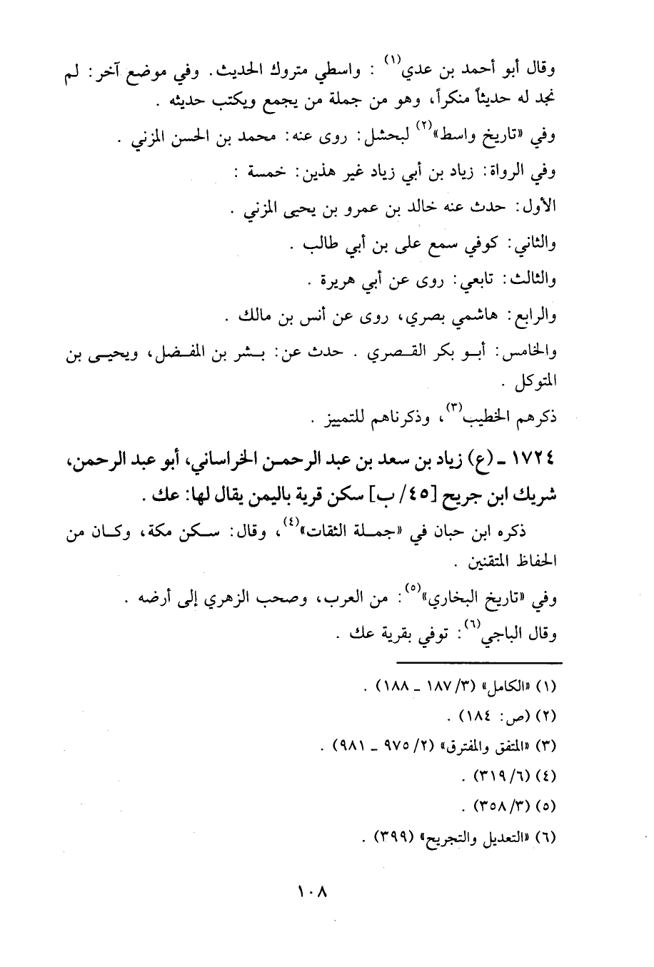 1724 - (ع) زياد بن سعد بن عبد الرحمن الخراساني، أبو عبد الرحمن، شريك ابن جريح [45 / ب] سكن قرية باليمن يقال لها: عك.