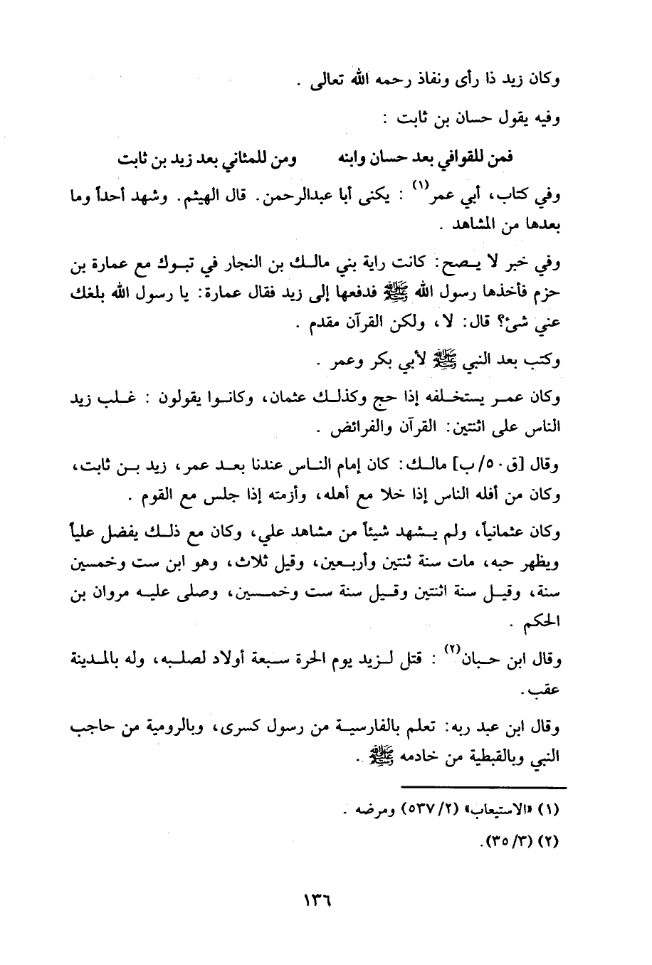 فمن للقوافي بعد حسان وابنه ... ومن للمثاني بعد زيد بن ثابت