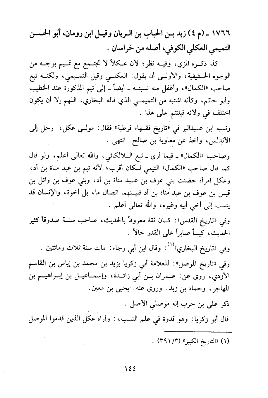 1766 - (م 4) زيد بن الحباب بن الريان وقيل ابن رومان، أبو الحسن التميمي العكلي الكوفي، أصله من خراسان.