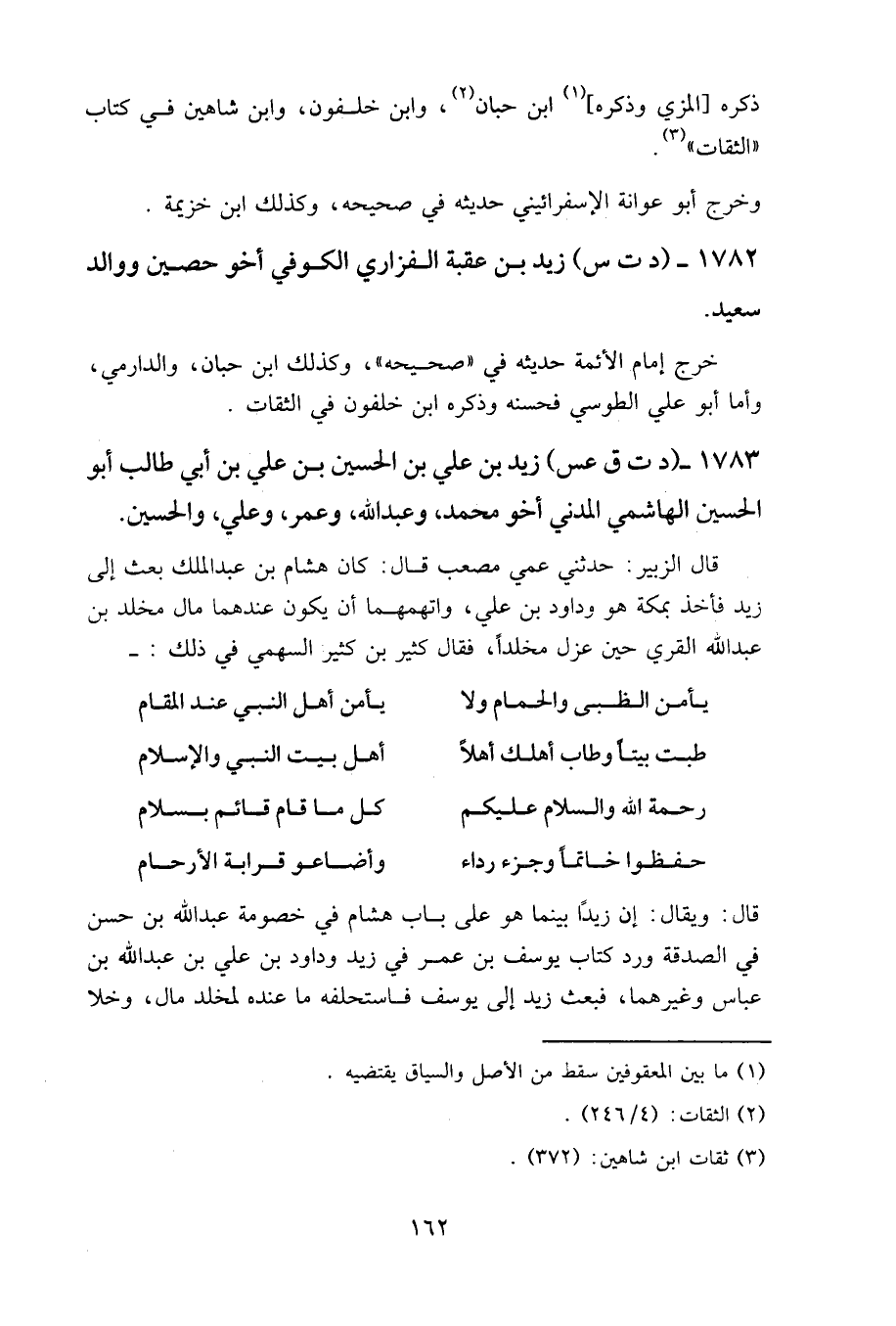 1783 - (د ت ق عس) زيد بن علي بن الحسين بن علي بن أبي طالب أبو الحسين الهاشمي المدني أخو محمد، وعبد الله، وعمر، وعلي، والحسين.