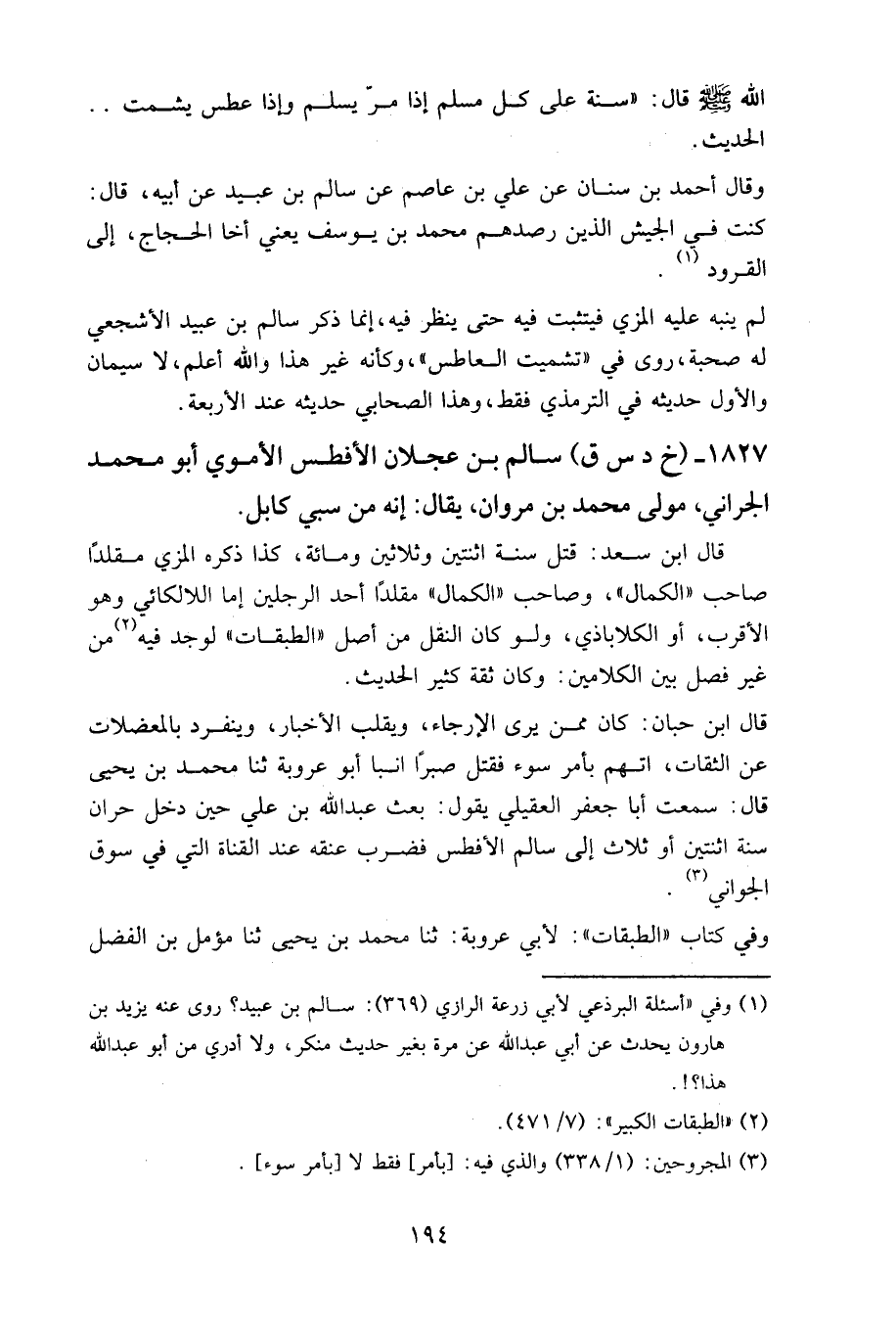 1827 - (خ د س ق) سالم بن عجلان الأفطس الأموي أبو محمد الجراني، مولى محمد بن مروان، يقال: إنه من سبي كابل.
