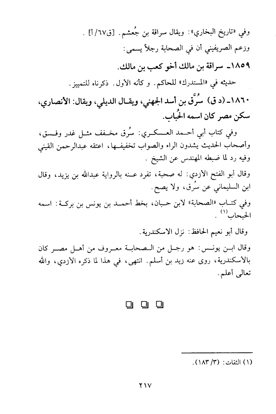 1860 - (د ق) سرق بن أسد الجهني، ويقال الديلي، ويقال: الأنصاري، سكن مصر كان اسمه الحباب.