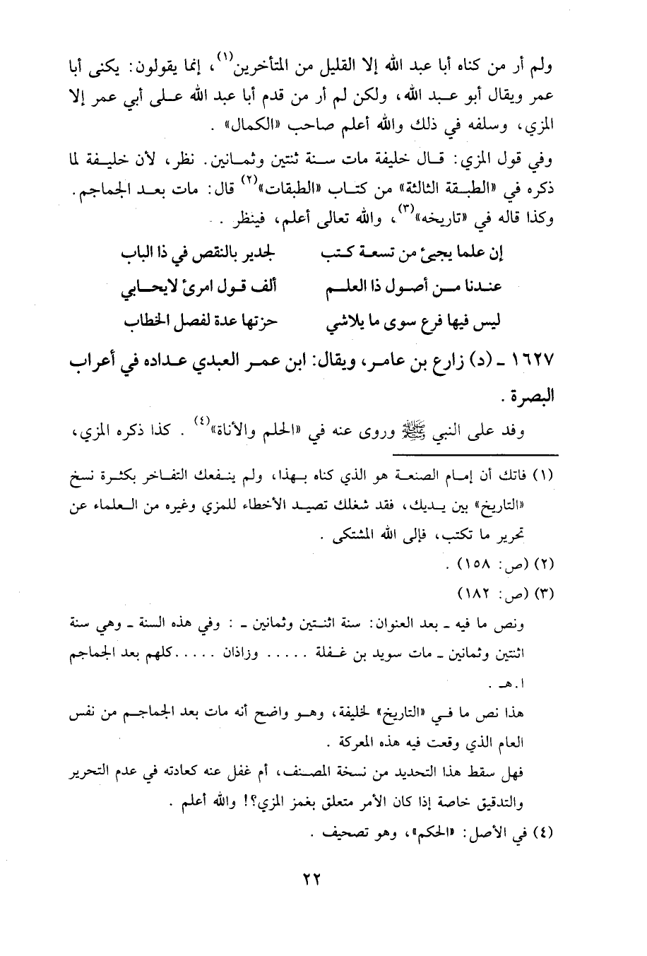 ولم أر من كناه أبا عبد الله إلا القليل من المتأخرين، إنما يقولون: يكنى أبا عمر ويقال أبو عبد الله، ولكن لم أر من قدم أبا عبد الله على أبي عمر إلا المزي، وسلفه في ذلك والله أعلم صاحب «الكمال».