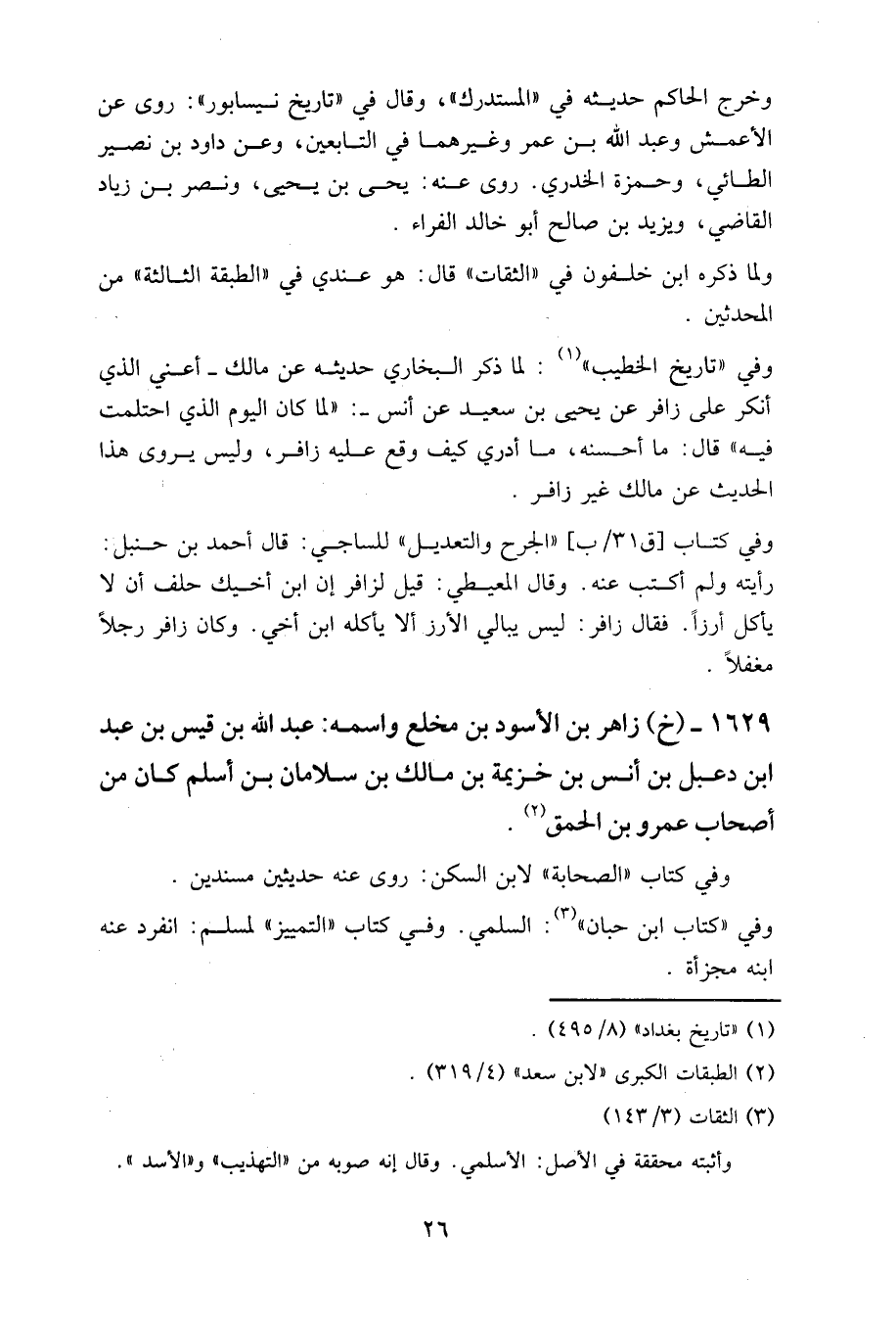 1629 - (خ) زاهر بن الأسود بن مخلع واسمه: عبد الله بن قيس بن عبد بن دعبل بن أنس بن خزيمة بن مالك بن سلامان بن أسلم كان من أصحاب عمرو بن الحمق.