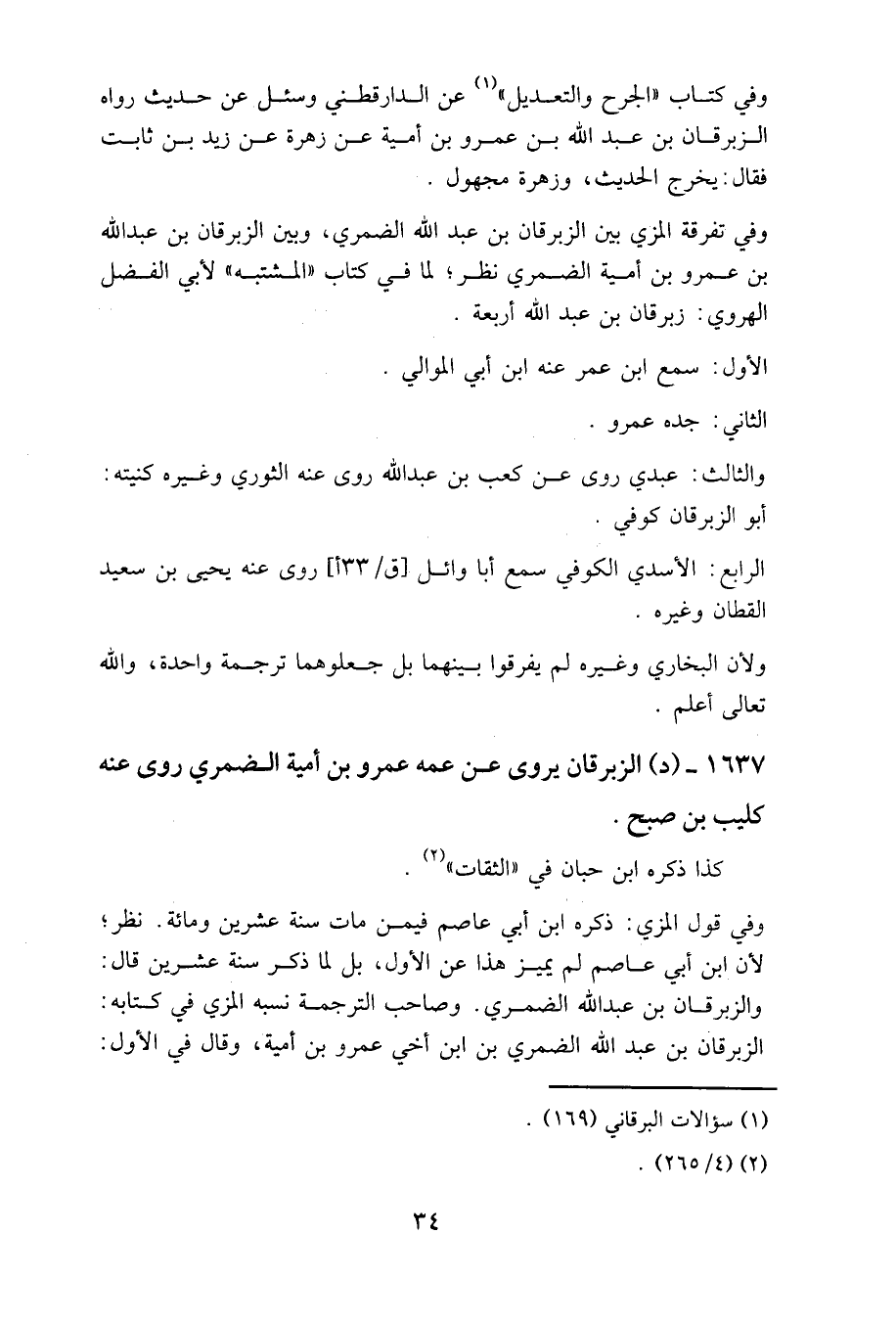 1637 - (د) الزبرقان يروي عن عمه عمرو بن أمية الضمري روى عنه كليب بن صبح.