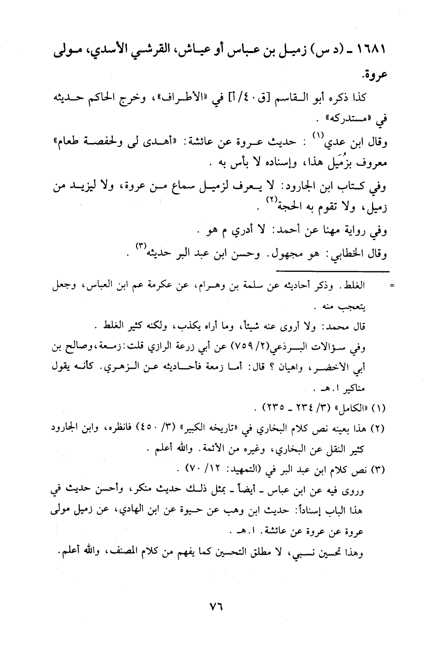 وفي كتاب ابن الجارود: لا يعرف لزميل سماع من عروة، ولا ليزيد من زميل، ولا تقوم به الحجة.