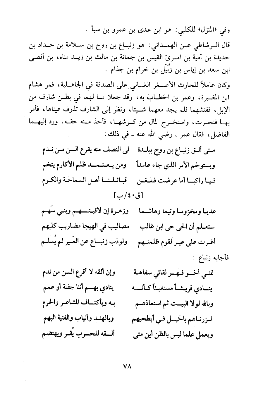 متى ألق زنباع بن روح ببلدة ... لي النصف منه يقرع السن من ندم