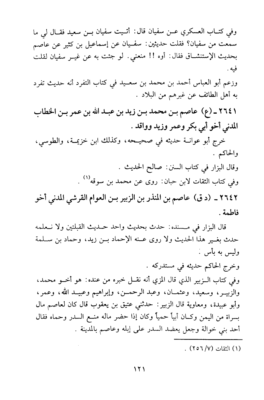 2641 - (ع) عاصم بن محمد بن زيد بن عبد الله بن عمر بن الخطاب المدني أخو أبي بكر وعمر وزيد وواقد.