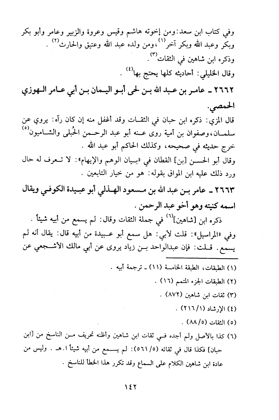 2663 - عامر بن عبد الله بن مسعود الهزلي أبو عبيدة الكوفي ويقال اسمه كنيته وهو أخو عبد الرحمن.