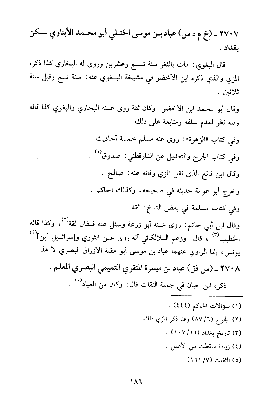 2707 - (خ م د س) عباد بن موسى الختلي أبو محمد الأبناوي سكن بغداد.