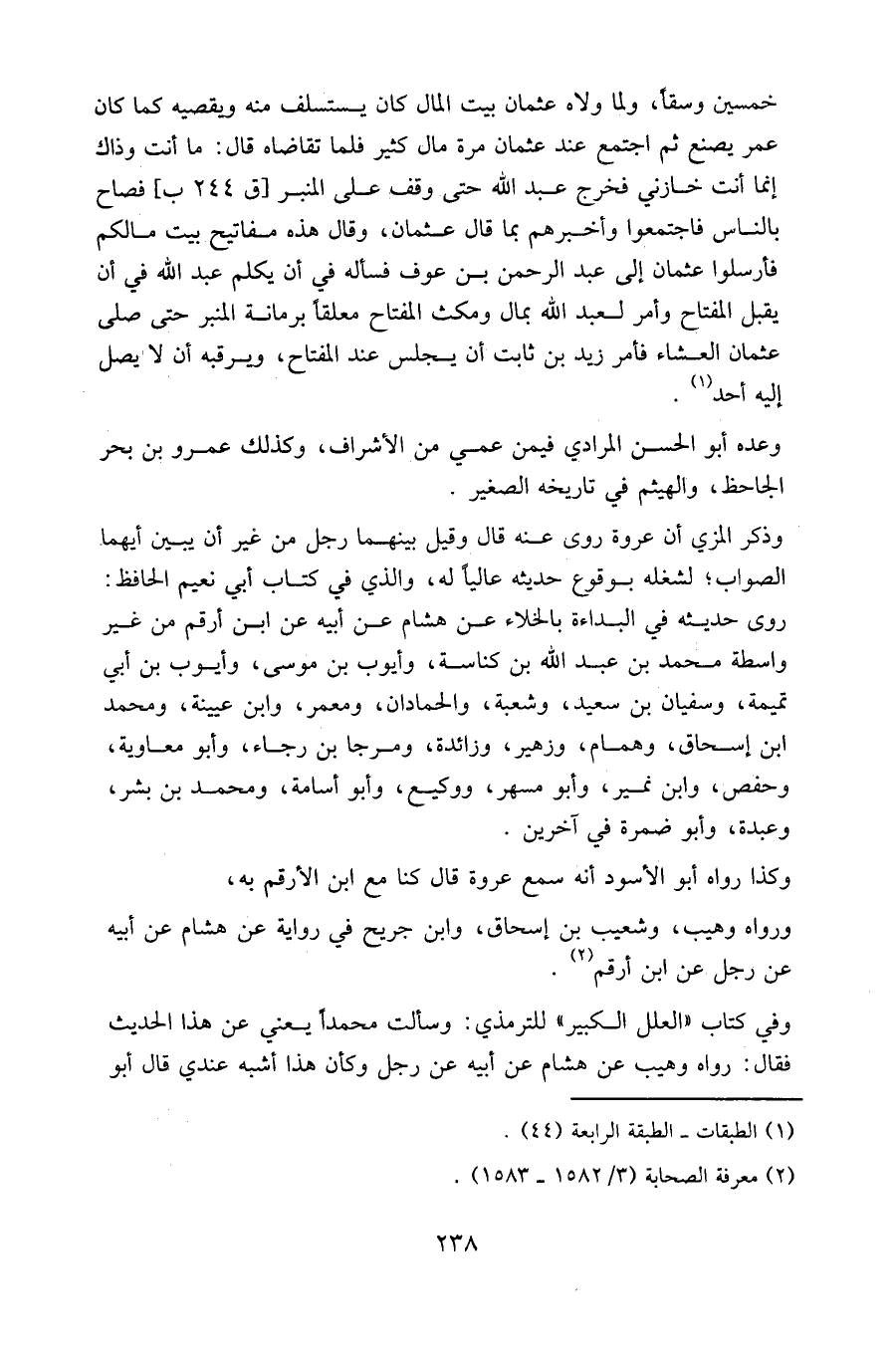 وكذا رواه أبو الأسود أنه سمع عروة قال كنا مع ابن الأرقم به، ورواه وهيب، وشعيب بن إسحاق، وابن جريح في رواية عن هشام عن أبيه عن رجل عن ابن أرقم.