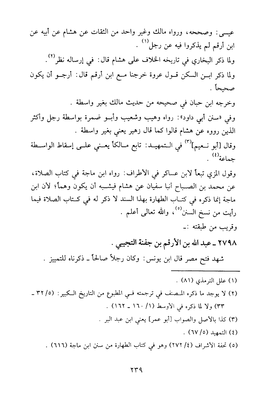 2798 - عبد الله بن الأرقم بن جفنة التجيبي.