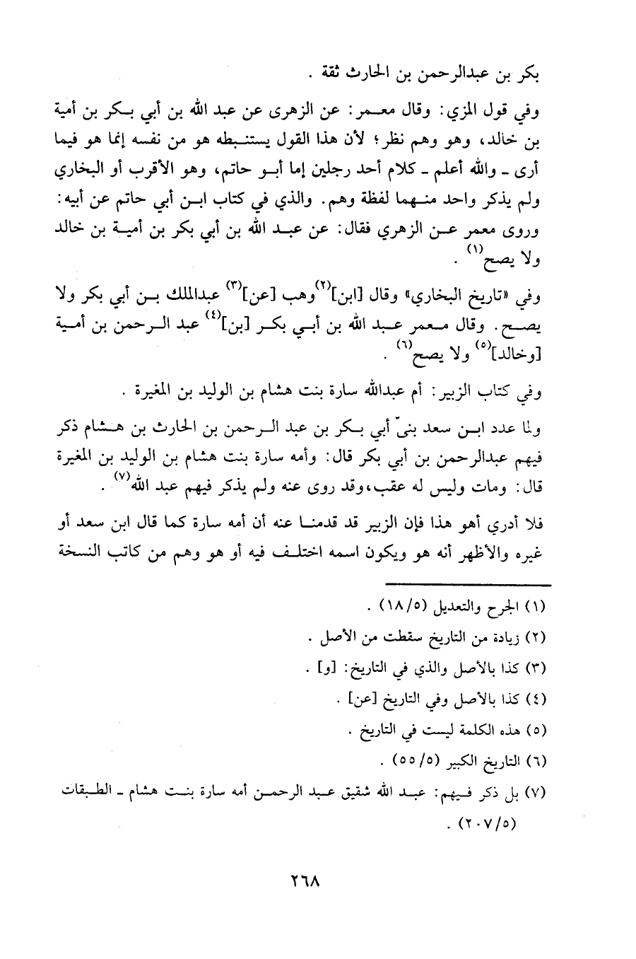 ولما عدد ابن سعد بني أبي بكر بن عبد الرحمن بن الحارث بن هشام ذكر فيهم عبد الرحمن بن أبي بكر قال: وأمه سارة بنت هشام بن الوليد بن المغيرة قال: ومات وليس له عقب، وقد روى عنه ولم يذكر فيهم عبد الله.
