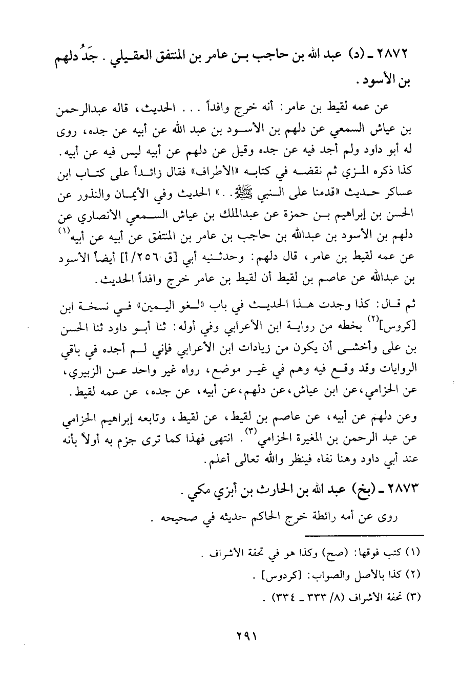 2872 - (د) عبد الله بن حاجب بن عامر بن المنتفق العقيلي. جد دلهم بن الأسود.