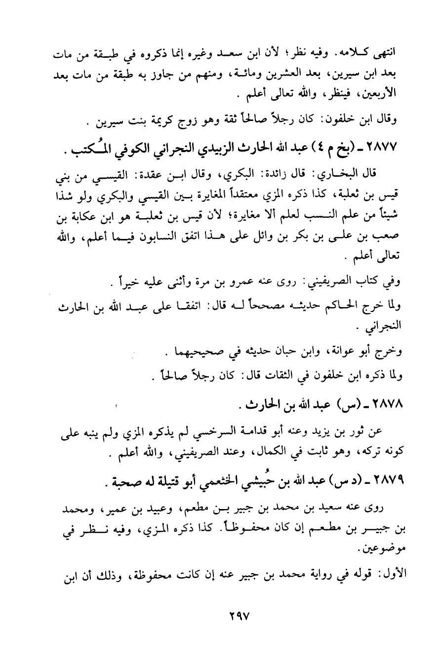2877 - (بخ م 4) عبد الله الحارث الزبيدي النجراني الكوفي المكتب.