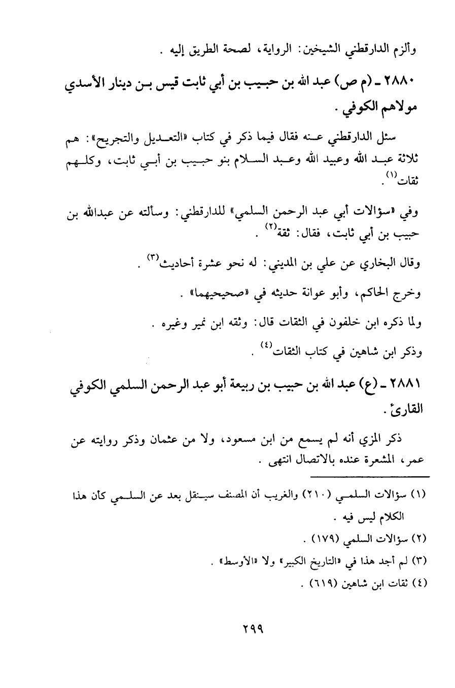 2881 - (ع) عبد الله بن حبيب بن ربيعة أبو عبد الرحمن السلمي الكوفي القارئ.