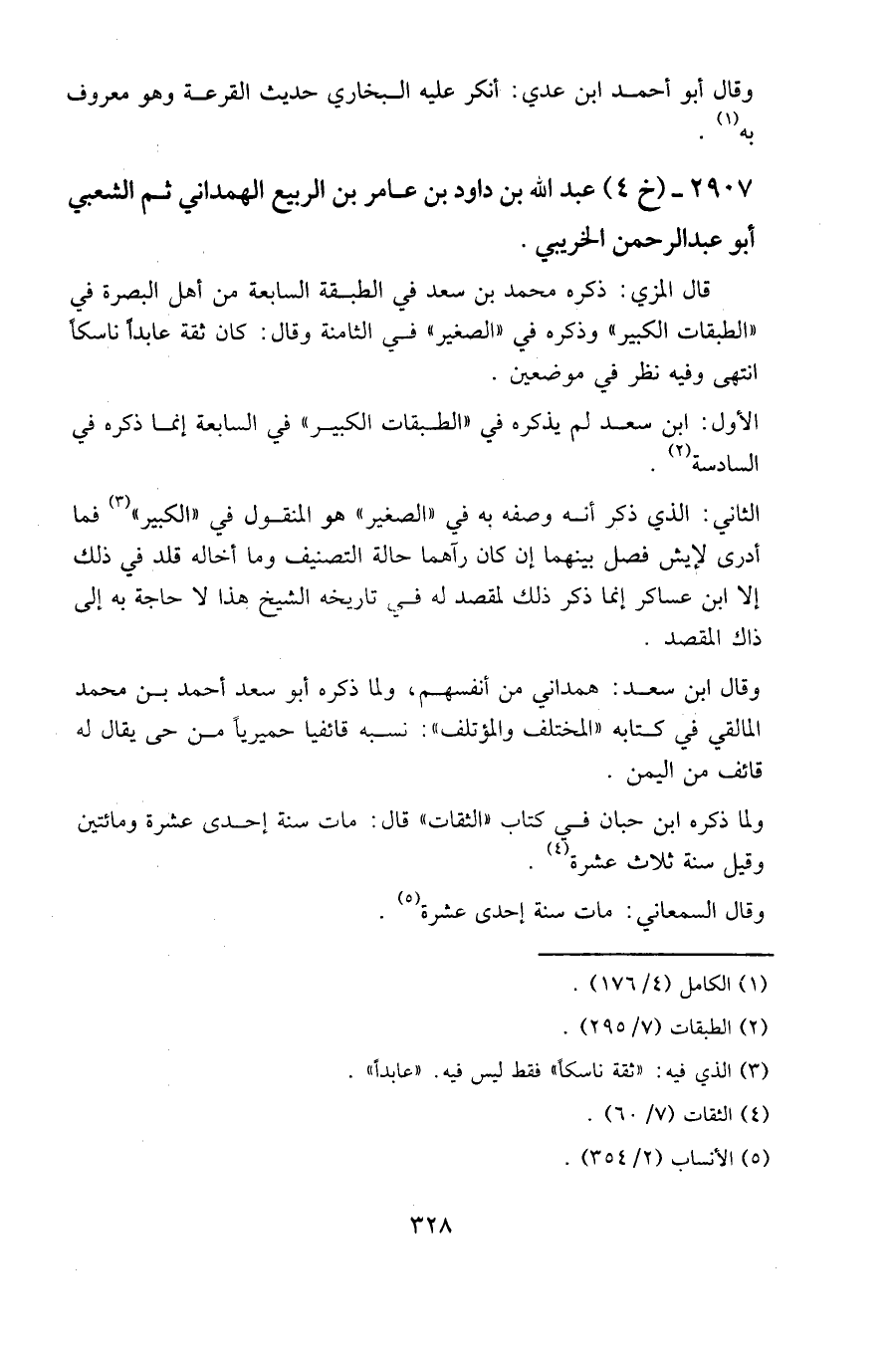 2907 - (خ 4) عبد الله بن داود بن عامر بن الربيع الهمداني ثم الشعبي أبو عبد الرحمن الخريبي.