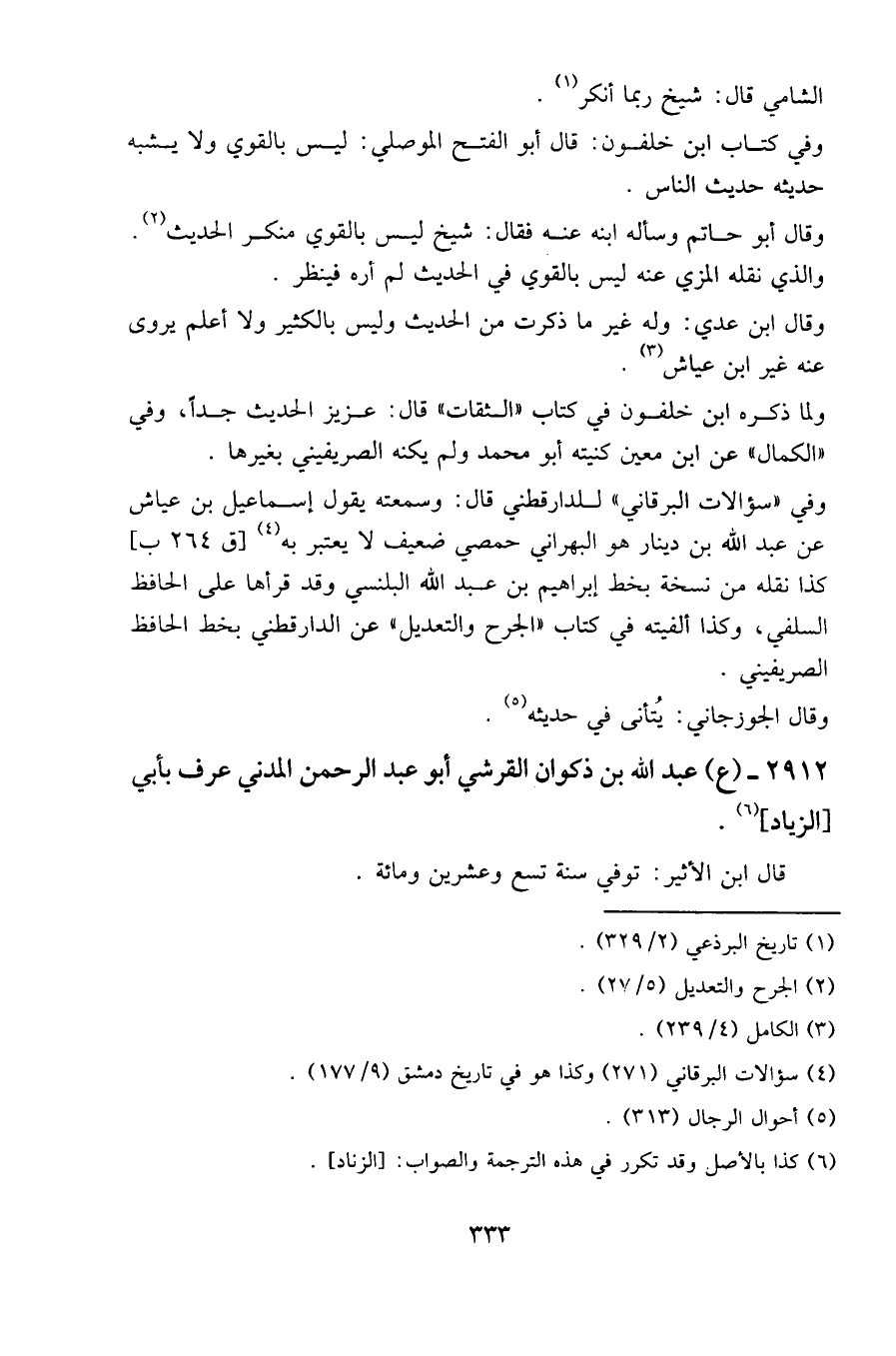 2912 - (ع) عبد الله بن ذكوان القرشي أبو عبد الرحمن المدني عرف بأبي [الزياد].