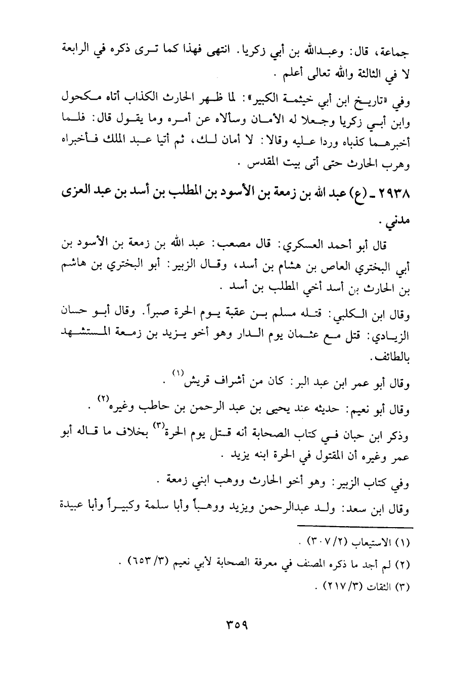 2938 - (ع) عبد الله بن زمعة بن الأسود بن المطلب بن أسيد بن عبد العزى مدني.