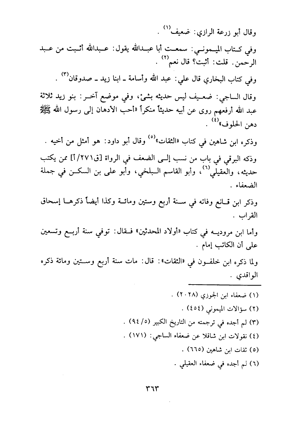 وقال الساجي: ضعيف ليس حديثه بشيء، وفي موضع آخر: بنو زيد ثلاثة عبد الله أرفعهم روى عن أبيه حديثا منكرا " أحب الأدهان إلى رسول الله صلى الله عليه وسلم دهن الحلوف ".