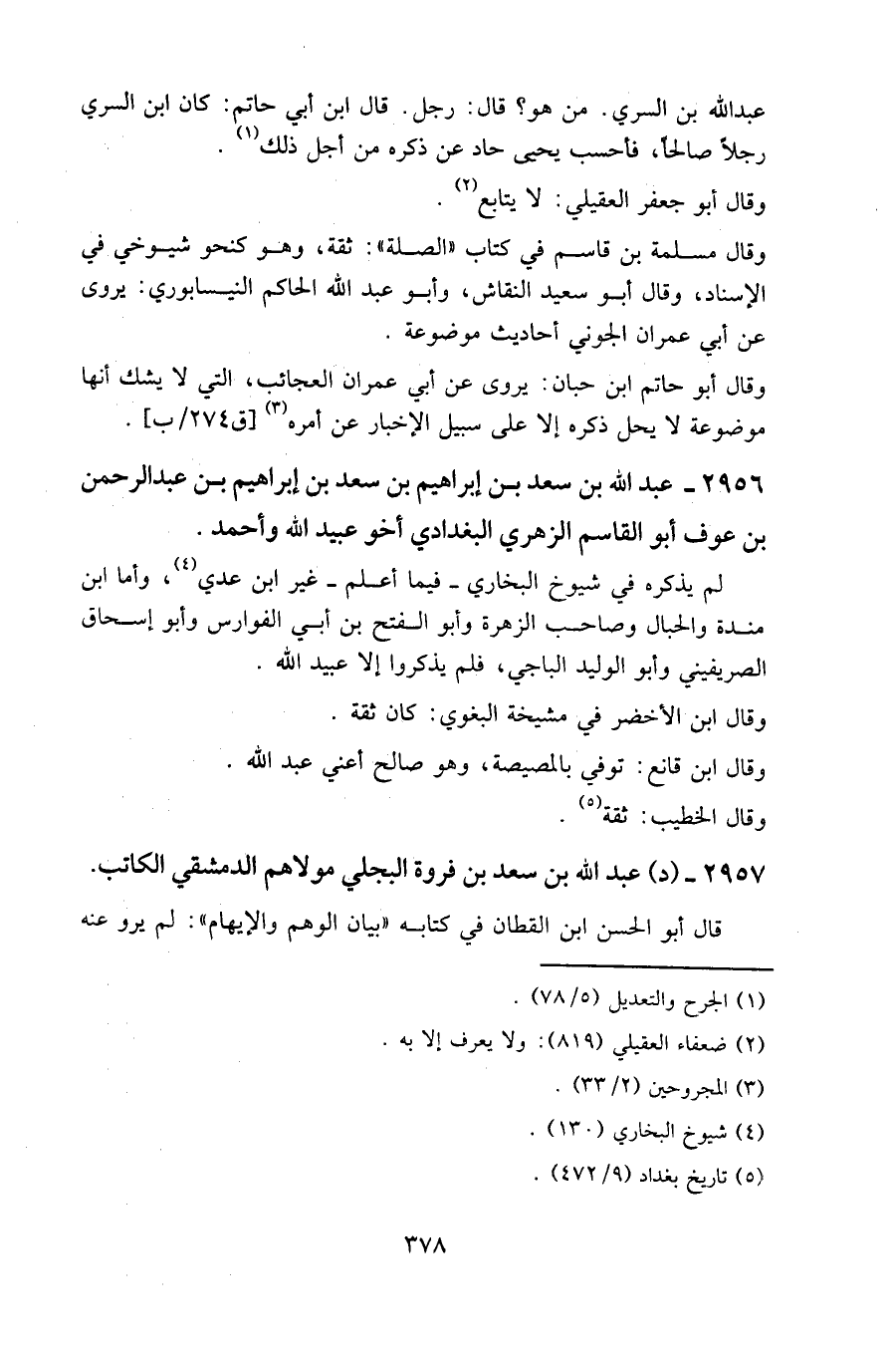 2956 - عبد الله بن سعد بن إبراهيم بن سعد بن إبراهيم بن عبد الرحمن بن عوف أبو القاسم الزهري البغدادي أخو عبيد الله وأحمد.