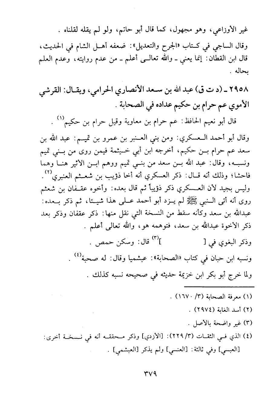 2958 - (د ت ق) عبد الله بن سعد الأنصاري الحرامي، ويقال: القرشي الأموي عم حرام بن حكيم عداده في الصحابة.